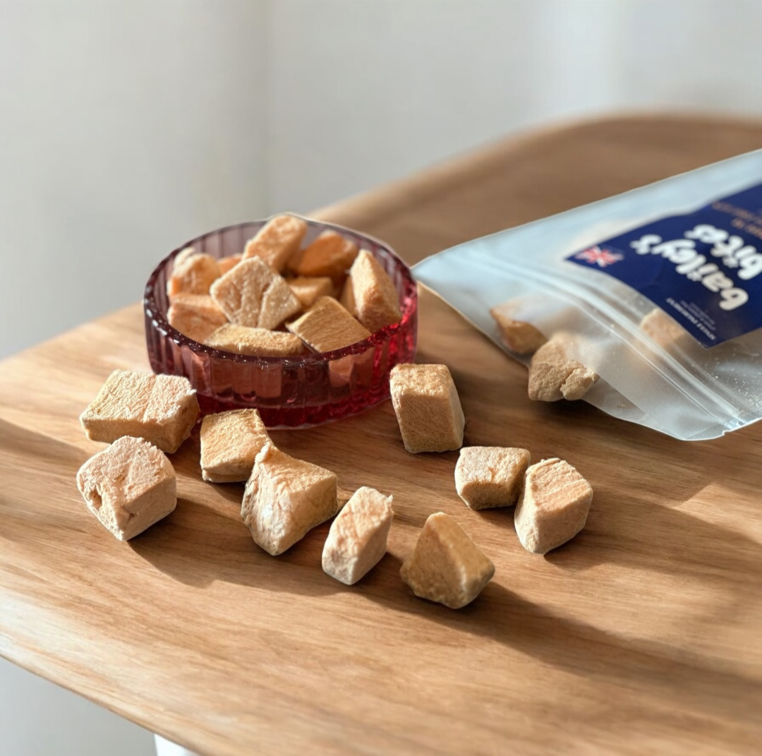 At Bailey’s Bites, we're setting a new standard for pet nutrition. The science of freeze-drying meets the love of British real food, handmade in small batches for concentrated nutrition and uncompromised flavour.